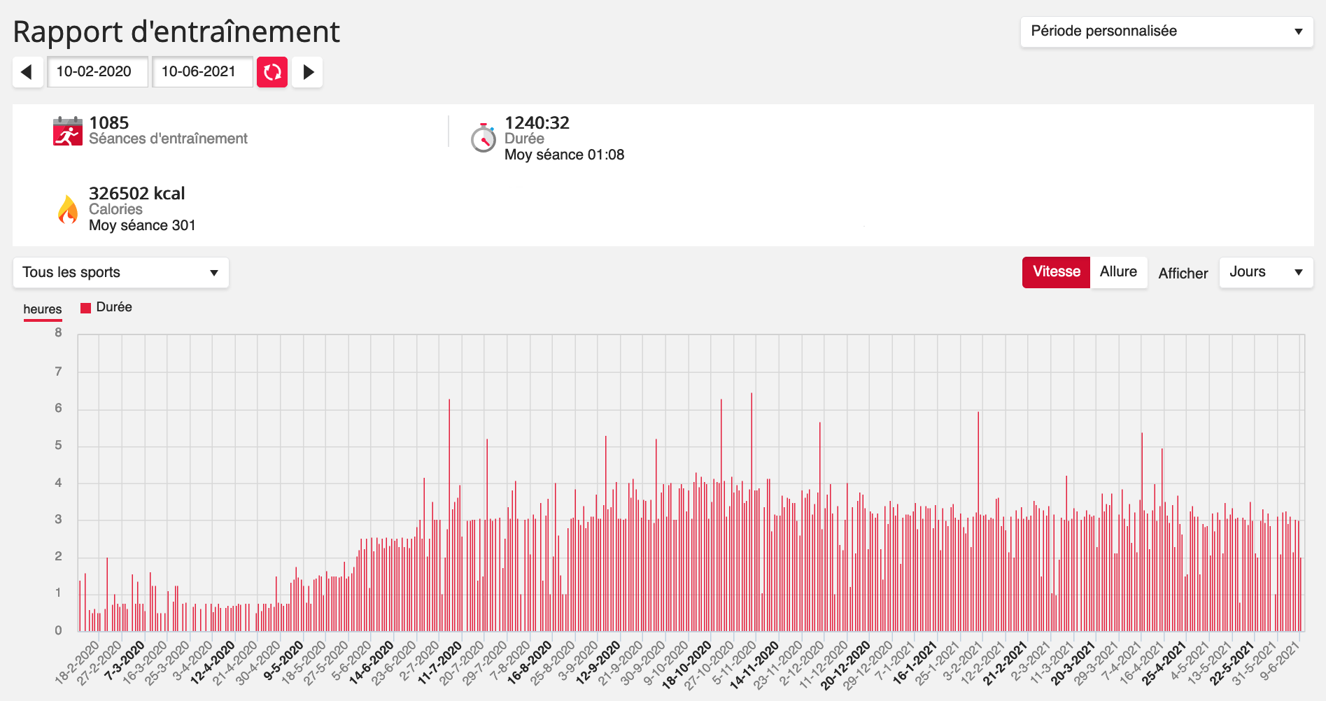 Du 10 février 2020 au 10 juin 2021, j’ai accompli 1 240 heures de sport :